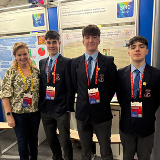Finn, Cian and Nathan had an exciting week with their project - "Dominant is Prominent" A statistical analysis how ocular dominant vision can improve putting in golf. They had the privilege of a visit from the Taoiseach, the American Ambassador and the President of the ASTI at their stand and test the theory by trying out the putting experiment.
